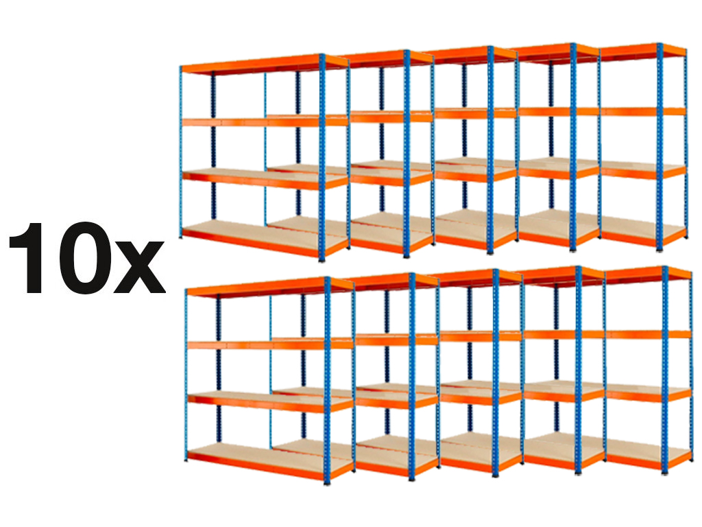 AKCIÓS CSOMAG: 10 DARAB IPARI PROFI SALGÓ POLC 1680x1600x500 mm lakkozott 4-polc, teherbírás 1600 kg – KÉK-NARANCS
