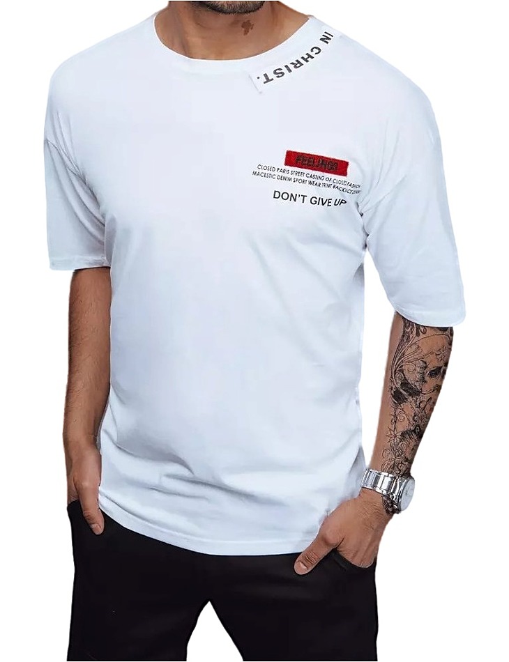 Férfi póló rövid ujjú Fehér póló mintával a mellkasán✅