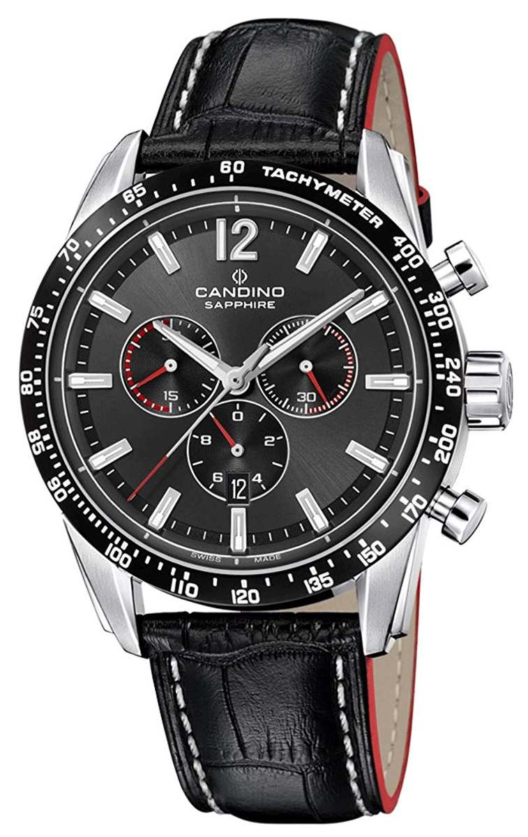 Márka: CANDINO | Kollekció: GENTS SPORT CHRONOS | Modell: C4681/2 | Garancia: 2 évek | Szín: fekete | Tok színe: ezüst árnyalat | Tok anyaga: nemesacél | Táplálás: elem | Szíj anyaga: bőr | Funkciók: Dátum – a hónap napja | Funkciók: Stopper 1/10 másodperc – 30 perc | Vízálloság: 100M/10ATM | Üveg: zafír | Forma: kerek | Csatolás típusa: standard felcsatolás | Rendeltetés: férfi | Termék típusa: karórák | Típus: analóg | Szíj szélessége: 22-20 mm | Átmérő: 45 mm