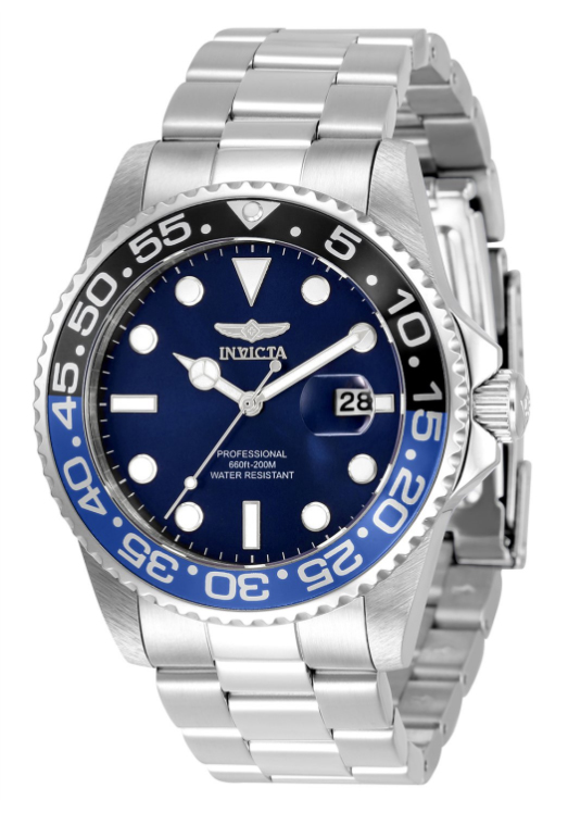 Márka: INVICTA | Kollekció: Pro Diver | Modell: 33253 | Garancia: 2 évek | Szín: kék | Szín: ezüst | Tok színe: ezüst árnyalat | Tok anyaga: nemesacél | Táplálás: elem | Szíj anyaga: nemesacél | Funkciók: Dátum – a hónap napja | Vízálloság: 200M/20ATM | Üveg: flame fussion | Forma: kerek | Csatolás típusa: zsanérzár biztosítékkal | Számjegyek a számlapon: indexek | Rendeltetés: férfi | Minimális kerület: 16 | Termék típusa: karórák | Típus: analóg | Maximális kerület: 22,5 | Szíj szélessége: 22-20 | Átmérő: 43 | Vastagság: 12