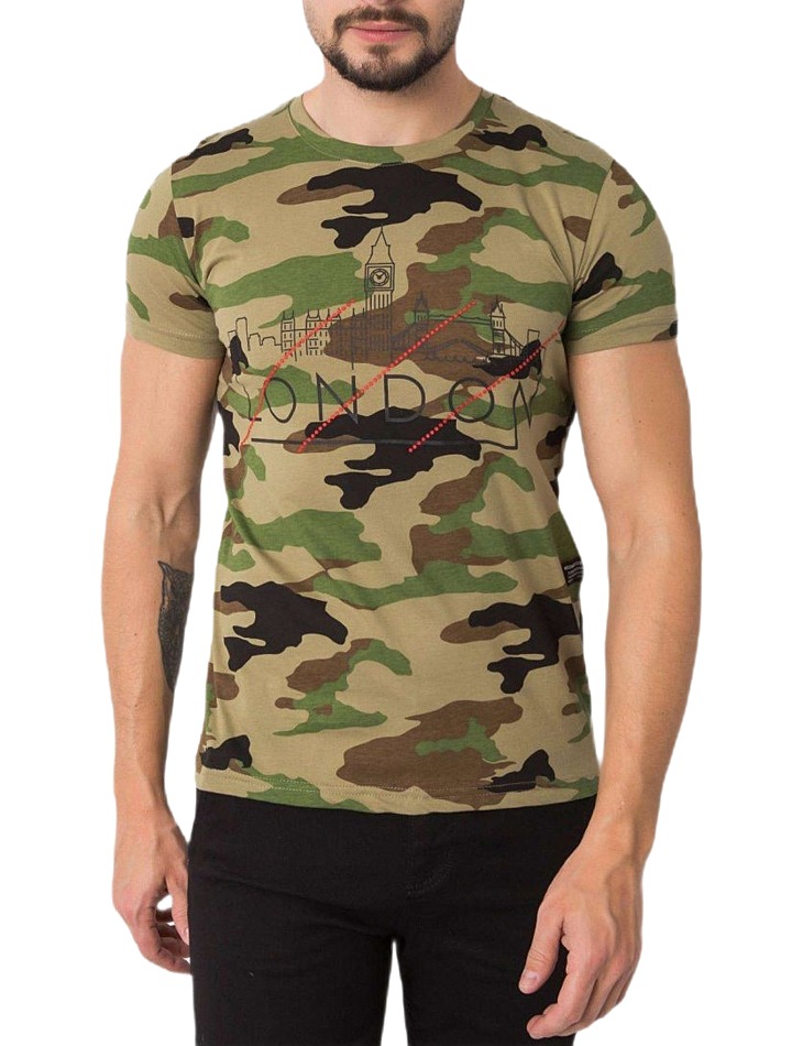 Férfi póló rövid ujjú Khaki férfi camo póló✅ Basic