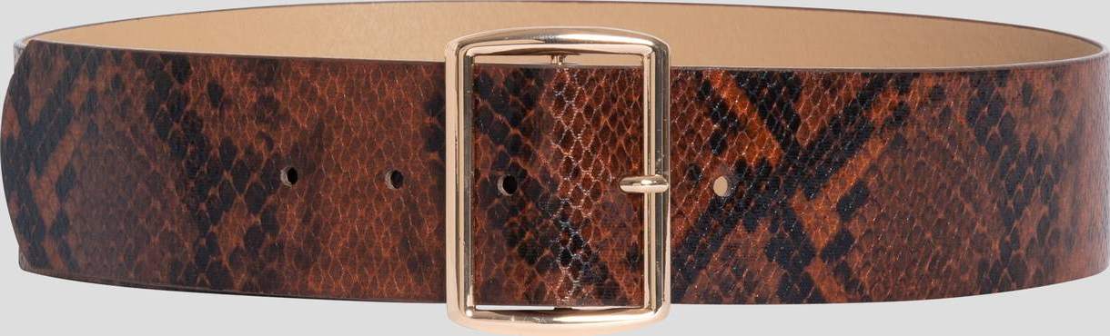 Sikkes sikkes deréköv, kígyóbőr minta, széles fazon, elöl téglalap alakú övcsat, lakkozott műbőrből készült Öv szélessége: 5 cm.