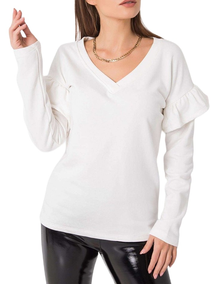 Krém női pulóver, fodrokkal az ujján✅ – Basic