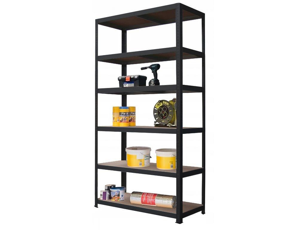 Lakkozott fém Salgó polc 2200x900x450 mm, 6 polcos, teherbírás 1050 kg – FEKETE