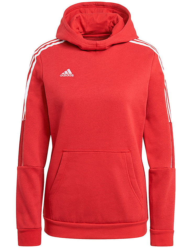 ✅ Női Adidas Tiro 21 pulóver piros színben. Rendszeres vágás. Pamut és újrahasznosított poliészter keveréke. Első zseb Bordázott mandzsetta és szegély