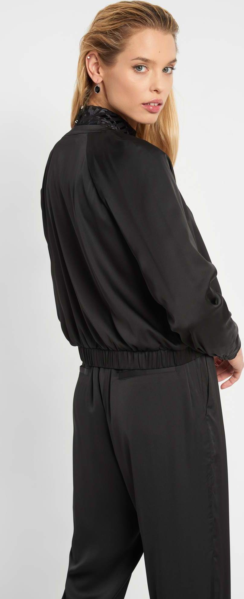 Lezser lezser női dzseki, kerek nyakkivágás, hosszú, bő, gumírozott végű ujjak, gumírozott alj, elöl cipzáras rögzítés, két zseb, puha anyagból készült, finom bélés A fényképen látható modell 178 cm magas és 38-as méretet visel.