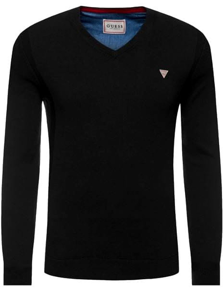 ✅ Találd ki a férfi pulóvert. fekete rendszeres szerkesztés V – nyakkivágás logó